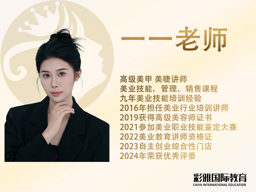 全体讲师平均从业经验超十年,沉淀出深厚的行业底蕴。彩雅国际教育秉持"以时尚之美,育未来之星"的核心理念,深度对接当代美业市场发展需求,创新融合传统教学与美业前沿趋势。通过构建"教学为本、教研为核、技术为翼"的立体化发展模式,不断探索技术研发与市场需求的深度融合,致力于成长为集人才培养、技术研发、市场服务于一体的美业综合教育平台,为行业输送兼具专业力与创新力的复合型人才。